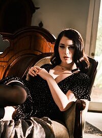Glamorous brunette with natural breasts enjoys riding hard knob
