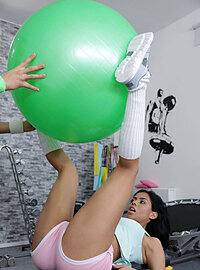 Photos description: Anna Rose and Canela Skin are getting a great workout on the Fitness Rooms, tightening their tummies and building their booties! Starting with the largest muscle group, the ladies grab a couple of kettlebells and hit squats for depth, then pull out a ball to do some ab work. Some barbel squats follow, and Canela's butt gets so pumped that she starts to twerk! Pulling out some water and oil, Anna lubes up Canela's booty and her own tits, then the ladies make out and pleasure each other with fingers and tongues. After some wet tribbing, Canela finishes herself as Anna enjoys!