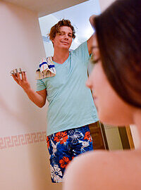 Photos description: Euro teen brunette Marry Morgan has booked herself a spa session, and lounges in a hot tub playing with her big boobs. Calling in her studly attendant Mike, Marry orders a coffee, but when Mike returns, it isn't the beverage she is interested in... It's his cock!M Arry takes out the handsome man's penis and licks the shaft, then gives him a sensual blowjob.A Fter pleasuring his partner back, Mike then thrusts his manhood into Marry doggystyle, and spanks her big booty.M Oving from the hot tub to a nearby bed, the couple fuck hard until Mike gives Marry a creampie!