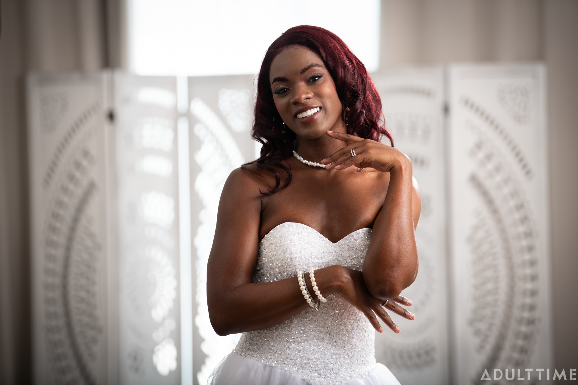 Photos description: A bride, Ana Foxxx, is at her wedding reception when a handsome cater-waiter, Robby Apples, catches her eye. Alone together, she comes onto him, showing no regard for the sanctity of marriage, insisting that her marriage is only one of convenience. Robby is hesitant at first but soon seduced and they have sensual sex... Only to almost be caught by the groom! Robby dives under her wedding dress, concealing himself completely.T Hat's when Robby learns the blushing bride was lying about it being a marriage of convenience and that the groom really loves her... But after the groom leaves and Robby confronts the unremorseful bride, he's still unable to resist finishing what they started.