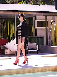 Photos description: The beautiful Italian goddess Valentina Nappi arrived from Italy today, and we had the pleasure of spending some time with her. She brought with her an amazing bikini that highlighted her curvaceous body. After a dip in the pool, we got to see her magnificent bush and hard nipples through the bikini's sheer material. It was an amazing sight, and we thought that the day couldn't be any better, but that was an incorrect assumption. Valentina slowly turned around and showed us her big booty. We were mesmerized by it. Soon after worshiping her monster donk, Valentina asked to get her pretty asshole licked and Clover gladly obliged. He got his face smothered and smacked by her butt cheeks. She then kung-fu gripped his cock and led him indoors where she gave him a masterful blow job. After getting his schlong slobbed on, Clover fucked the Italian goddess' wet pussy and tight little asshole. Valentina wanted to taste Clover's cum, so he blasted his entire load in her pretty mouth, and she enjoyed every drop.