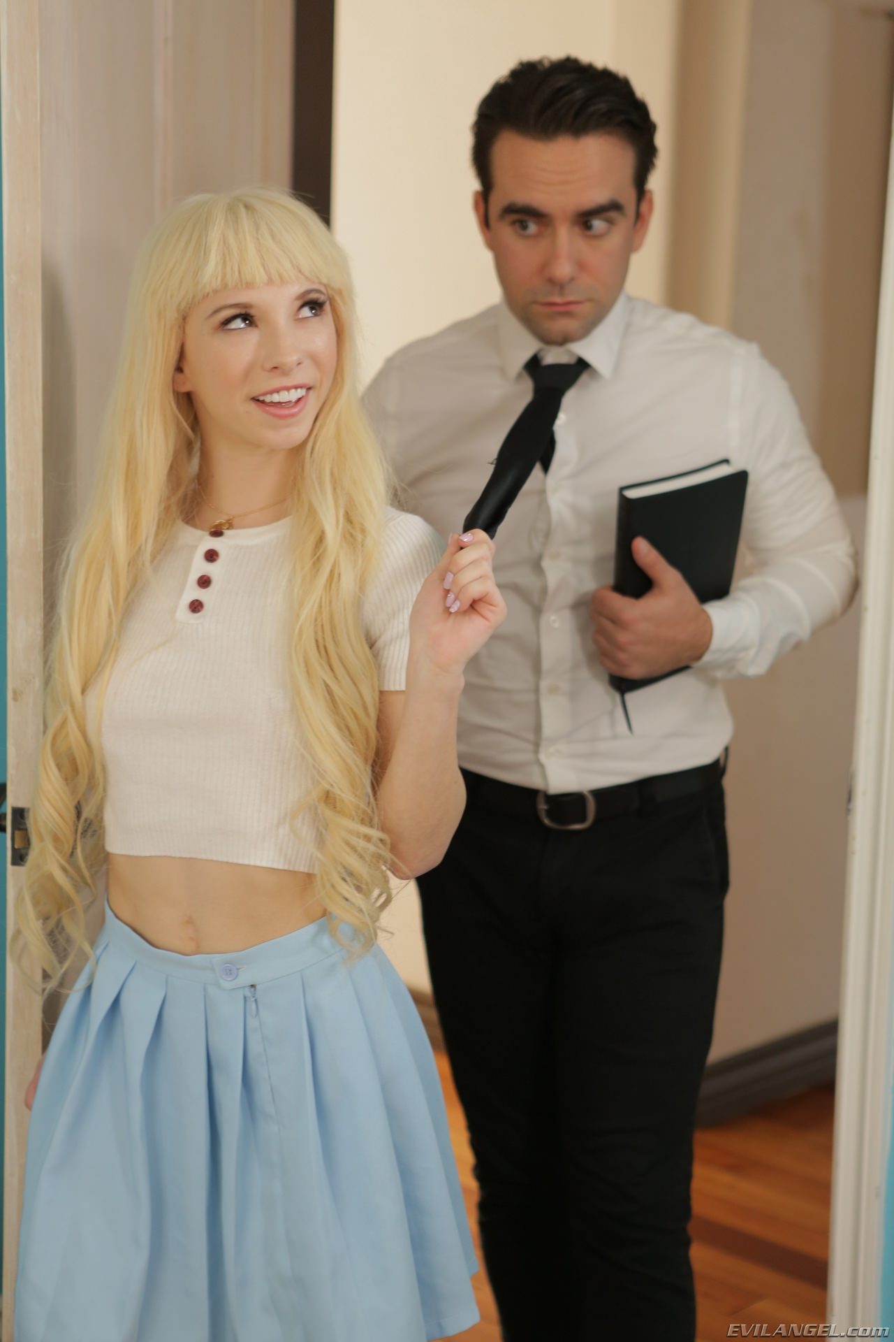 Photos description: Cute, petite Kenzie Reeves answers the door to find Logan Pierce, a devout Mormon Elder going door-to-door to spread the word of God. The sweet girl invites him in to talk, pretending she wants her sins absolved. Kenzie seduces the naïve disciple, who quickly falls for her devilish plan. She gives him a nasty, deepthroat blowjob, gagging as Logan reams her throat. Kenzie rests her head on the Book of Mormon, moaning in depraved anal lust as Logan sodomizes her. See blasphemous buttfucking and lewd rimming. The unholy encounter climaxes as Logan blesses Kenzie with a messy cum facial.