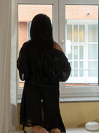 Photos description: Horny brunette LeXi Dona is masturbating by the window when she sees her voyeur neighbor spying on her! Making eye contact with Jason, LeXi invites him over to help her with her seXual urges. Jason races to meet LaXi, and they quickly start to passionately make out. Jason pleasures LeXi's tight pussy with his tongue, then eats her ass for good measure. Playing with LeXi's tits, Jason takes out his cock and gives him a blowjob, then the couple share some hot lovemaking before Jason creampies LeXi doggystyle.