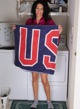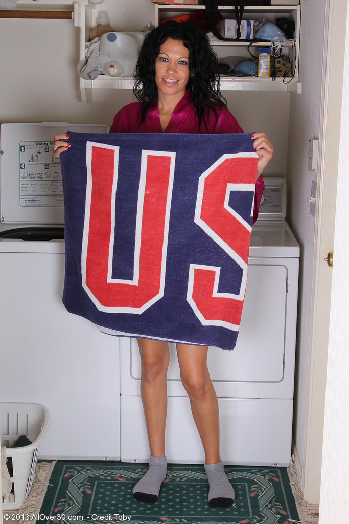 Photos description: Naira Smith's robe is soon on the floor followed by her undies. Displaying and caressing her titties then slide her fingers to buff her pearl.