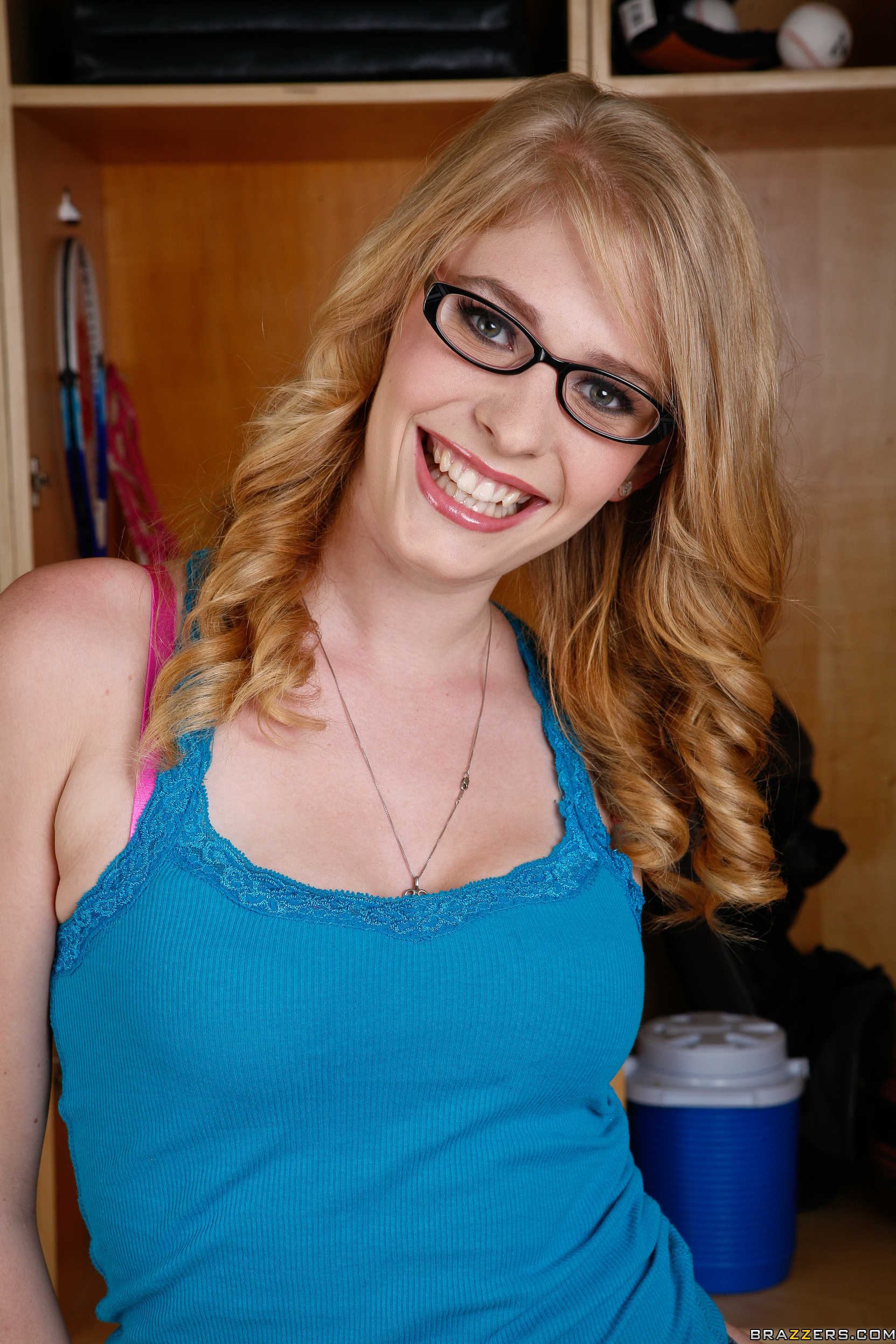 Photos description: Allie is the new girl at ZZ College. She's been waiting forever for a taste of college men. The fun starts when she sneaks into the mens locker rooms to catch a glimpse of college meat. The fun continues when she gets caught by James and he shows her what school spirit is all about.
