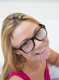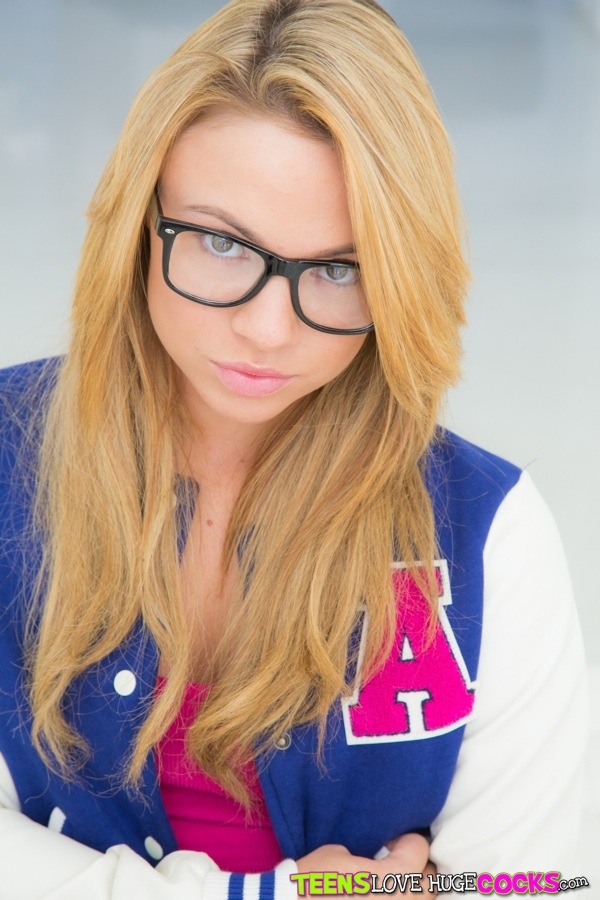 Photos description: Katerina, an admittedly size-queen, was about to get her fill. This nerdy blond and sexy teen likes reading, video games, masturbating, and big cocks. As she talked about her insatiable thirst for a giant meat stick, her pussy started dripping, and she couldn't help but to start to masturbate. As she stripped down, she revealed her supple young breasts, large plump ass, and soaked bare pussy. Chris was listening from a distance, and once she started masturbating, he couldn't help but to engage and give Katerina what she wanted. She grabbed his cock and her eyes lit up. We could see the love accented by her nerd glasses. She took that dick in her mouth and pussy until Chris could no longer keep up and exploded on her face.