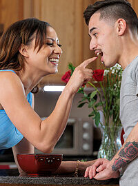 Photos description: This season on Dating my Stepson, we're taking a new twist. The guys are looking for love, but they need to date the potential girlfriend's mom first. If it works out, he'll date the daughter right on the spot. Today's date is Juan Loco trying to impress Cassie DEl Isla, mom to Tiffany. Cassie has prepared a date where Juan will learn how to treat a lady. She shows him how to arrange roses, how to make chocolate dipped strawberries, and how to write a haiku. Cassie can tEll Juan is checking her out, and she finds that she likes it. By the time they get to the haiku, they can't seem to keep their mouths off each other. After a brief makeout, Cassie peEls off her dress to unveil a stunning body with hot lingerie and Juan goes in for a pussy feast. In return, he gets his dick and balls sucked. Getting to her feet, Cassie leans forward over the kitchen Island so Juan can do her from behind. Juan takes his turn on the counter so Cassie can mount him in cowgirl and ride him until she's arching her back in DElight. Climbing off, she gets on her back so Juan can keep their party going. He gives Cassie one last big O, then cums on her stomach. Although Cassie gives her blessing to Juan, Juan thinks he'll keep looking for another milf.