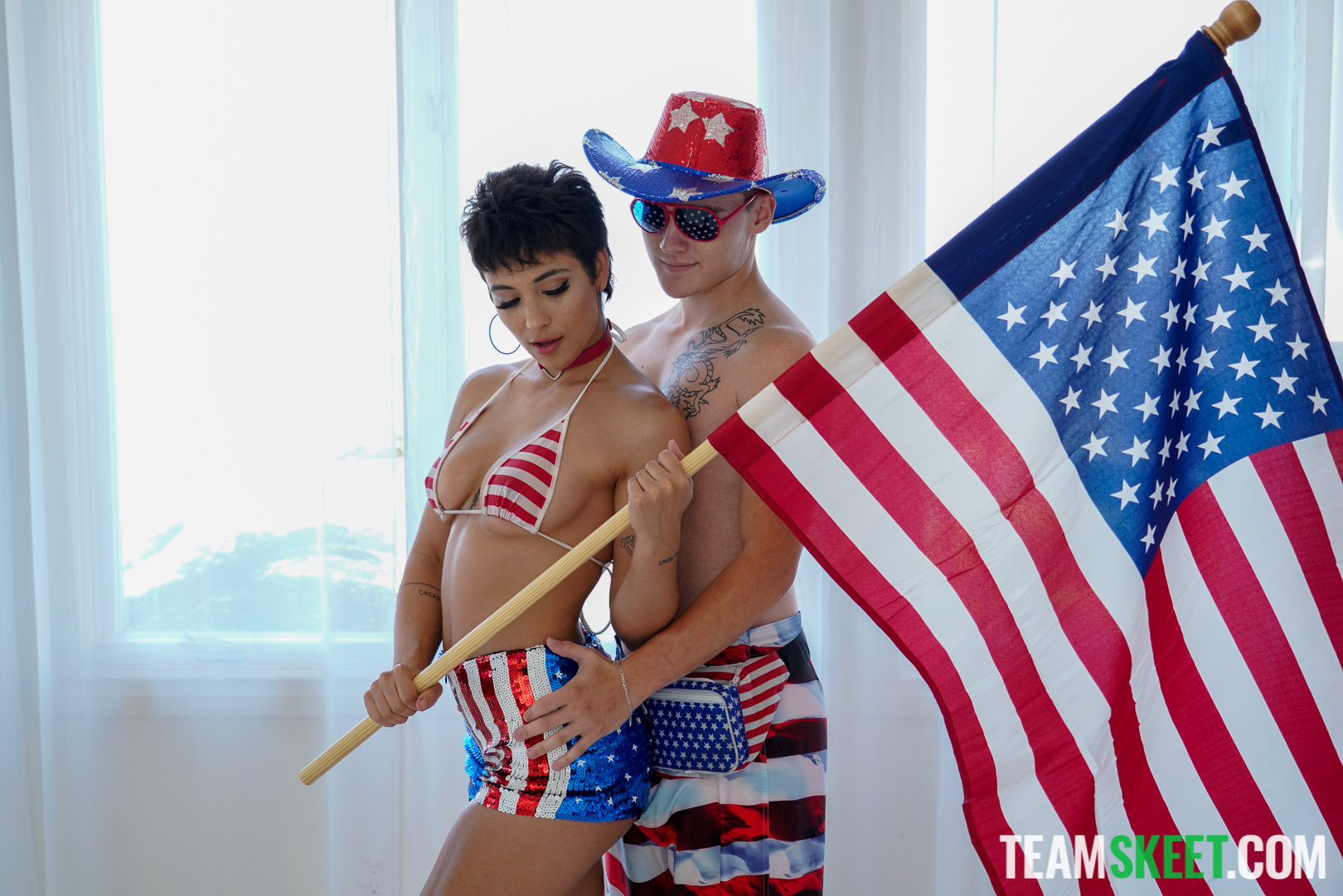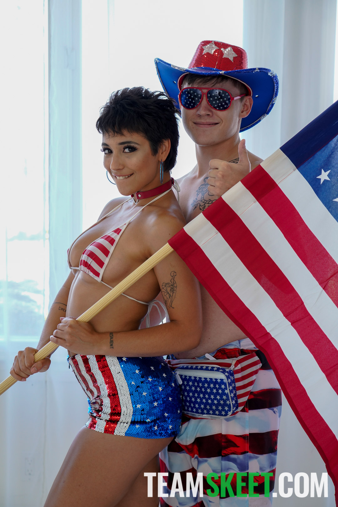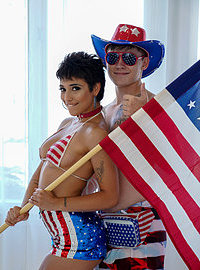 Photos description: It’s 4th of July, and to celebrate we have the hot and sensual Brooklyn Gray, wearing and modeling the beloved american flag by the pool. After getting hyped, lucky hunk Tyler Cruise joins her for a fun water gun battle before she lures him inside for a naughty patriotic fuck sesh! Happy 4th of July!