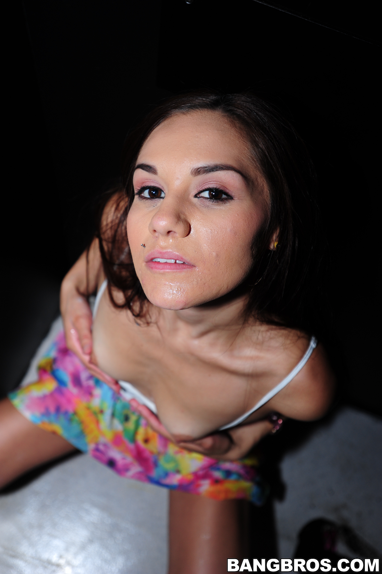 Photos description: Sofia Lata steps into the room of no return for the first time. She's the lucky contestant to be featured on this week's update of GloryHoleLoads. Dicks come through the walls and she sucks them all. She also backs that sweet little ass up against the wall. Sofia Lata gets the mother load of cum all over her. Enjoy!