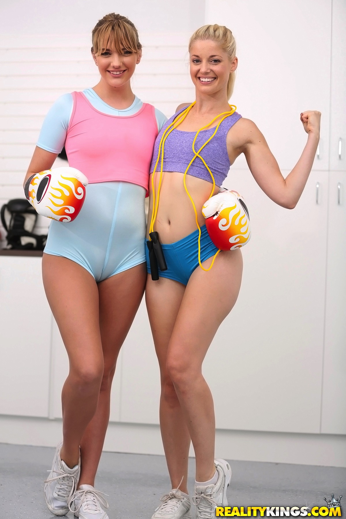 Photos description: Charlotte Stokely and Kenna had a workout session together and they immediately realized how it was simultaneously a great AND horrible idea. Great idea because they just ended up taking off all their workout clothes and licked each other down. Horrible idea because they really didn't get much exercise out of it. They definitely burned some calories when they heated things up but they were basically a huge distraction for each other. Something tells me they will definitely workout together again and they'll probably make a habit of it.