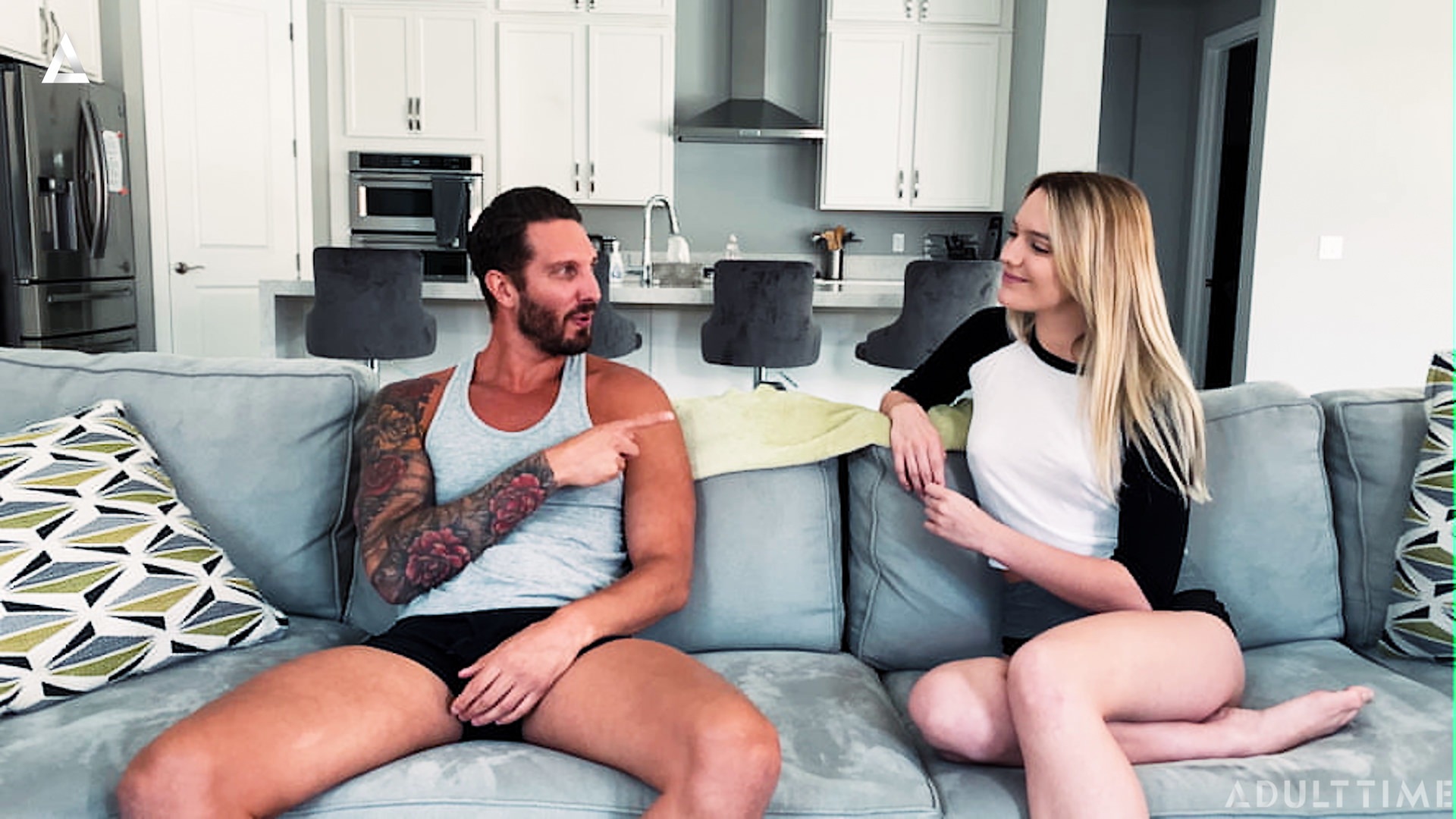 Short-haired schoolgirl with natural tits screwed in the living room