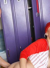 Horny college babe gets screwed in the locker room