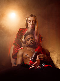 Photos description: Bored and restless, Haley plays a game with an innocent man who stumbles into the theater at the wrong time.