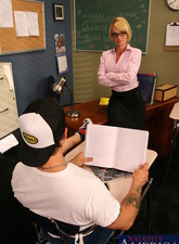 Photos description: Teacher Tyann Mason make Kurt stay after class not for some boring lesson but to have his cock sucked then her craving pussy pounded hard.