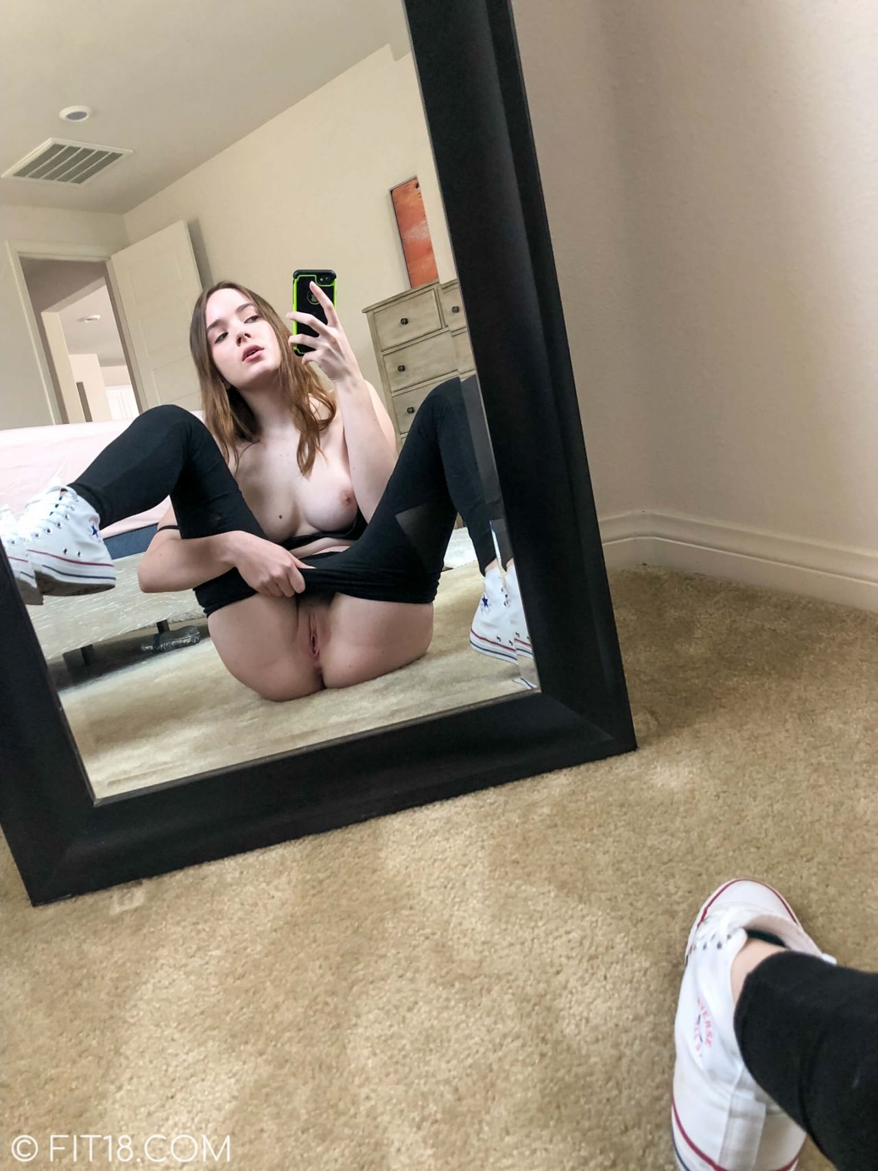 Tiny brunette Naomi Woods posing naked in front of the camera