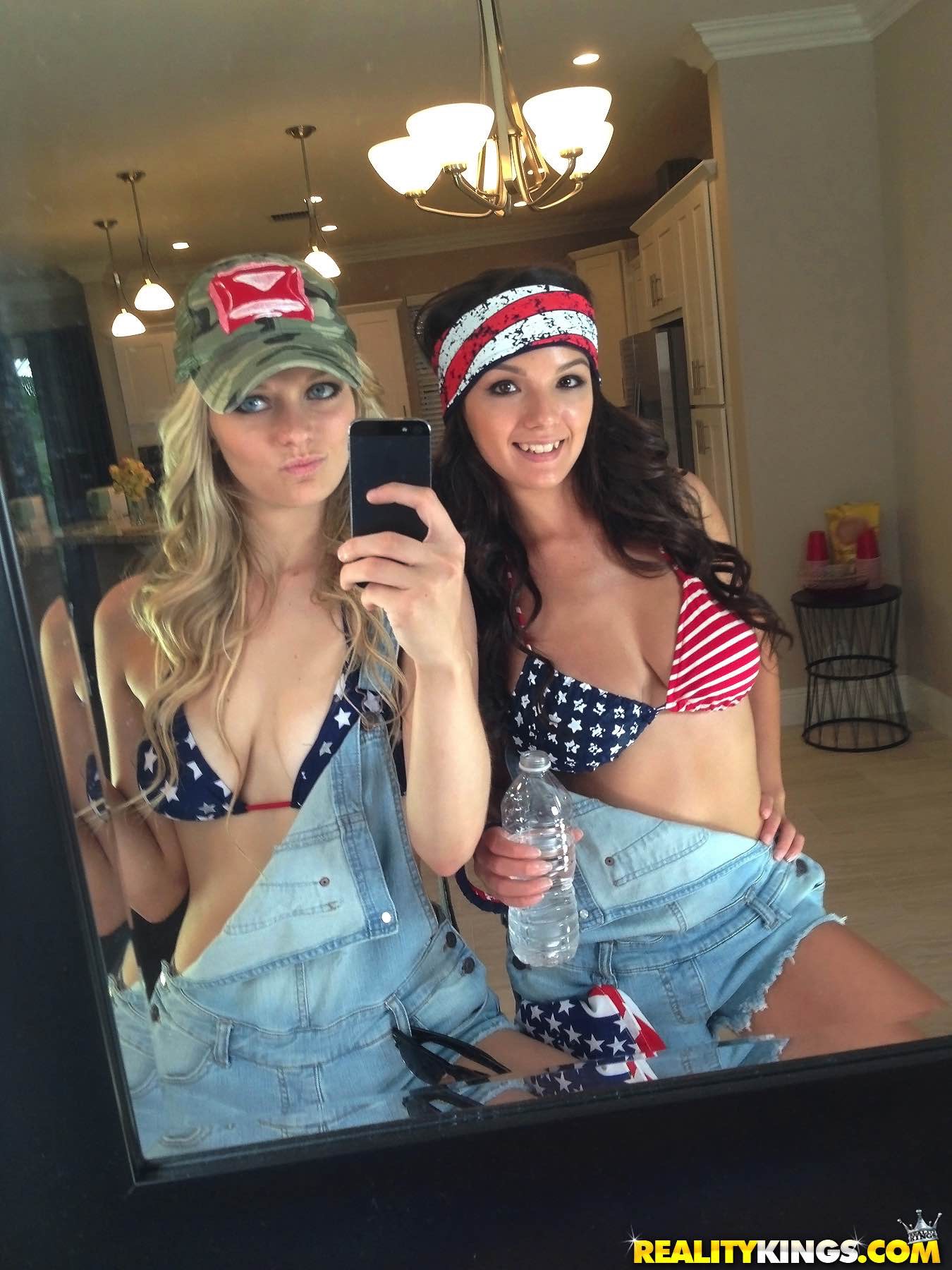 Photos description: Alli and Shae had just finished a shift working at a restaurant and they still had their sexy outfits on. They had super hot bikinis on under the overalls they wore. They both had such juicy side tit action going on. It didn't take long before they started talking about boys and Shae brought up that she was into girls. Alli got super interested in this and wanted to totally hook up with Shae since she had never done it and always wanted to. Alli wasted no time in diving face first into Shae's pussy to start eating her out. Don't miss one second of these hot hot girls going off on each other, plenty of tits and ass to go around.