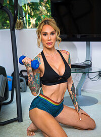 Movie description: Sarah Jessie has her husband's trainer over for a one on one session. Shes super impressed with her husbands gains and wants to see if she can accomplish the same results. After seeing the trainer's physique she takes her workout to another level. Watch how Sarah maxes out on squats with her wet pussy lips wrapped around the trainers hard cock.
