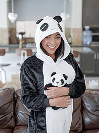 Movie description: Zerella Skies and her puppet pal panda are having a wonderful time wandering around the house, getting into all sorts of hijinks. But when she involves Quinton James in the games, he is less than impressed. Later, Zerella hides in the closet and surprises Quinton with a love tap from her puppet pal. Slightly aroused, Quinton and Zerella give the puppet pal panda a show it will never forget.