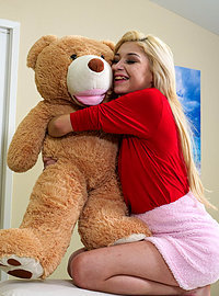 Movie description: It's Valentine's Day, so huge hunk Michael Swayze decides to give a giant teddy bear to his petite girlfriend Sia Lust, but after she receives the gift, Michael catches Sia playing naughty with the teddy! When Michael confronts her about it and says he has video of her getting freaky with the teddy bear, she must let Michael play with her however he wants and then he'll promise to delete the video of the tiny slut.