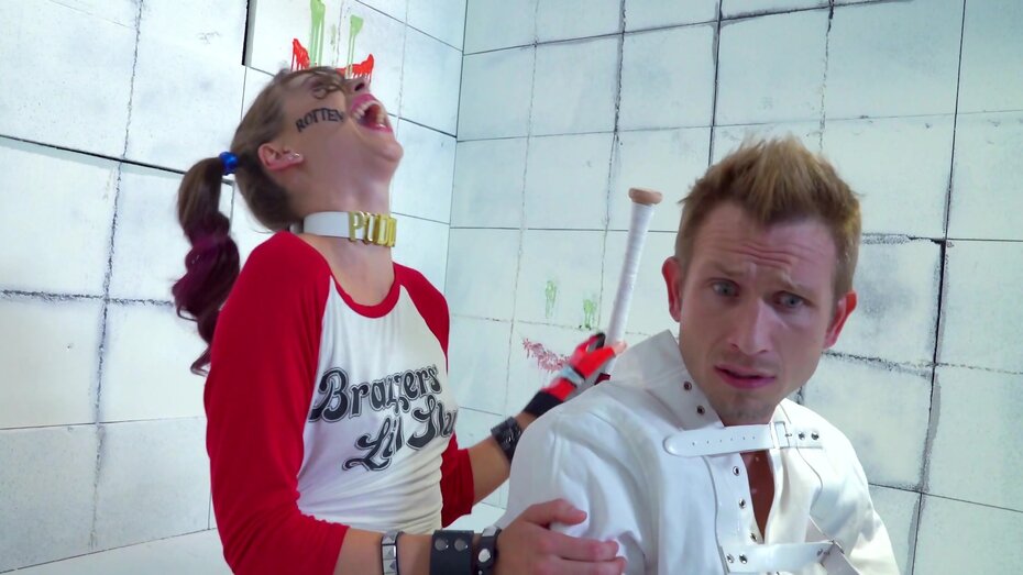 Movie description: Be warned: lunatic sex fiends like Harleen Quinzel (Riley Reid) are locked up for a reason. She might seem sweet and charming, but get too close and you'll find out why they call her Harley Quinn. New asylum doctor Bill Bailey finds out the hard way that when you give Harley an inch, she'll take 6 more inches.