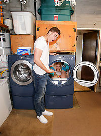 Movie description: Riley Star is a cute blondie who is hot and knows it. She uses her tiny body to get guys to do whatever she wants, whenever she wants. Just watch her show off her perky titties and her perfectly toned physique. She can induce a boner like a pro. And when our stud shows up, she proves that she also knows how to pleasure one, too. She sucks and slobbers before hopping on his giant prick to go for a wild ride. The little babe gyrates her hips and works her tight pussy lips on his massive dong, eager for his semen. She even gets dicked down in a washing machine! By the time she is done, our stud is ready to blow the load of his life. And he does, all over young Riley. A satisfying finish to an extra small fuck sesh.